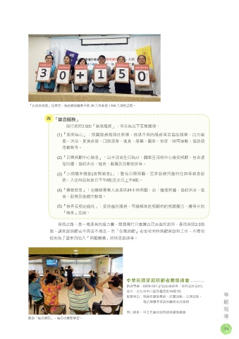 務,讓家庭照顧者不再苦不堪言,而「在職照顧」者也可同時兼顧家庭和工作,不需匆